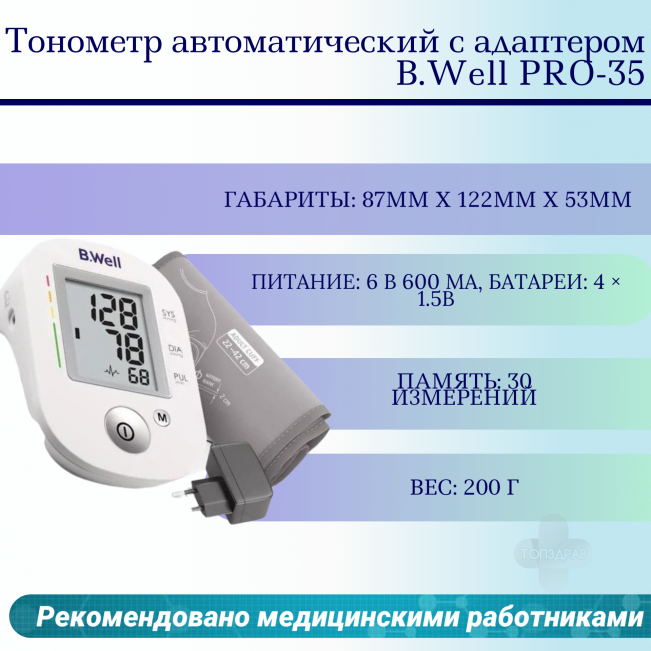 Тонометр автоматический с адаптером B.Well PRO-35